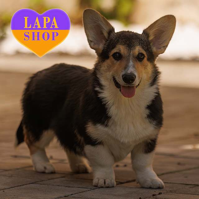 This charming girl is a Pembroke Welsh Corgi with an exquisite tricolor color that harmoniously combines deep black, white, and warm red shades. Her compact build, expressive eyes, and neat ears make her appearance particularly attractive. The girl is already socialized: she knows how to walk on a leash, behaves well in the car, and knows basic skills.
