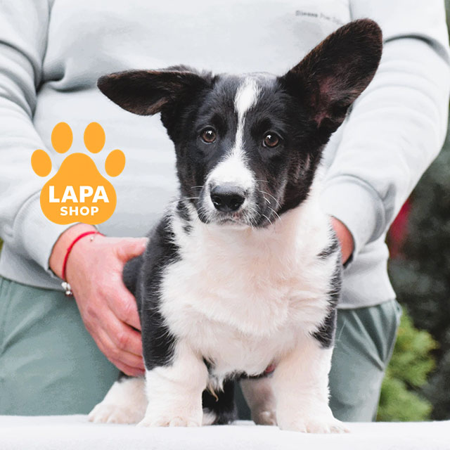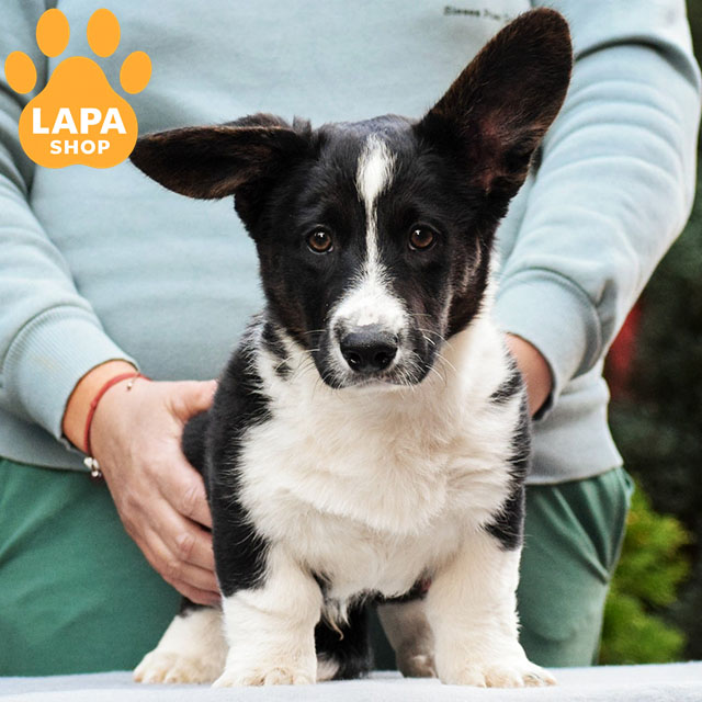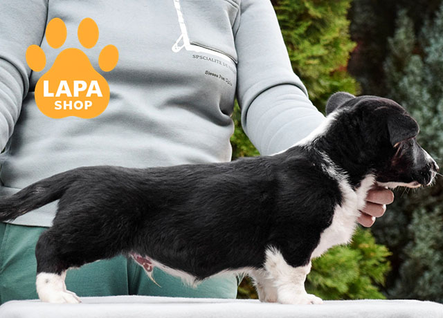 A handsome Cardigan Welsh Corgi boy with a tricolor color that harmoniously emphasizes his compact physique and breed traits. A well-built body, strong bones, and a neat muzzle make its appearance expressive and attractive.