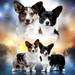 This charming girl has a distinctive tricolor color that harmoniously combines several shades. Her coat emphasizes her elegant body structure and attractive appearance. The puppy looks elegant and neat, attracting attention with its bright appearance.