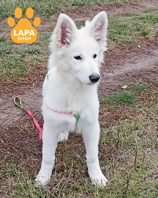 Jessi is a graceful girl of the White Swiss Shepherd breed with luxurious long white fur, which gives her a noble and gentle appearance. Her silhouette is elegant and harmonious, and her soft, fluffy fur creates the impression of a real white angel. It looks very neat and attractive, without any flaws, and is ready to fill the home with beauty and warmth.