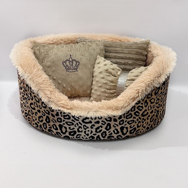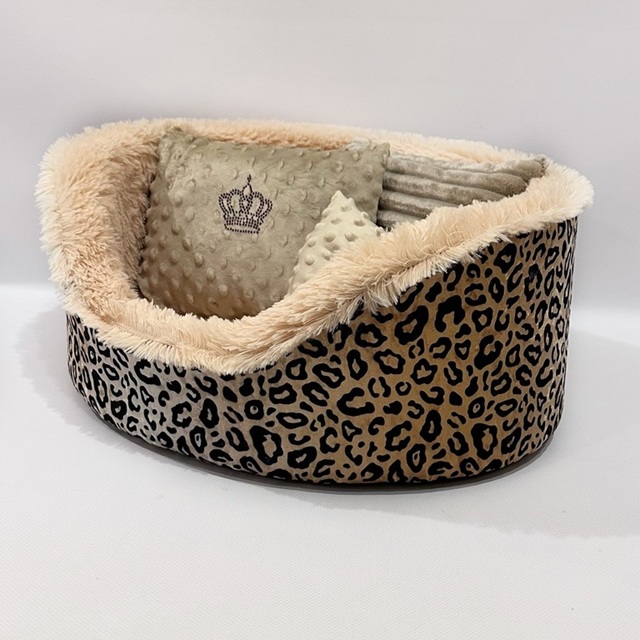 The dog and cat bed with soft orange and white colors will create a cozy atmosphere for your pet. The oval shape with sides makes this bed ideal for small animals.