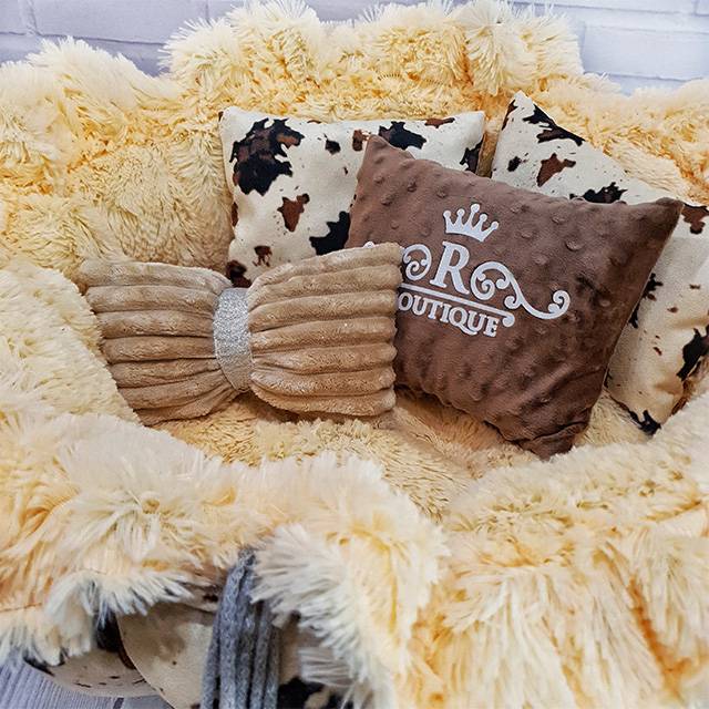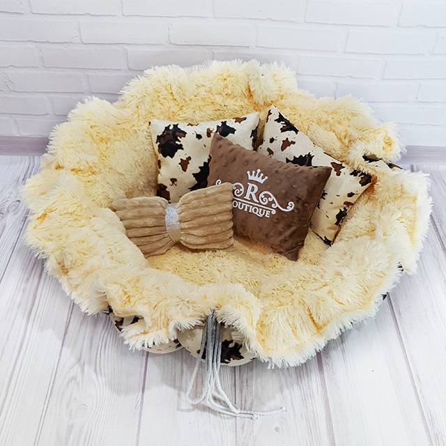 Reliable quality and comfort are ensured thanks to the moisture-resistant bottom and wide transformation options. Velor furniture fabric with a charming print and soft grass fur create an unforgettable feeling of comfort and look luxurious. Holofiber filling provides softness and elasticity. The set includes 3 decorative pillows and a squeaker toy to make this place even more attractive for your pet.
