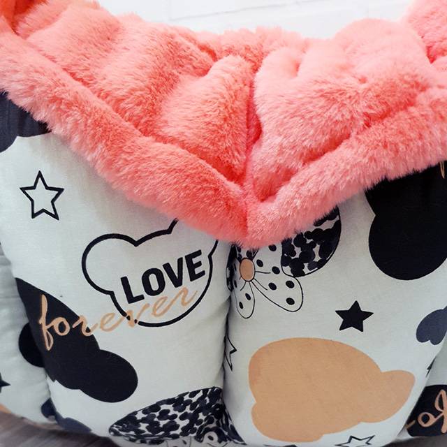 The holofiber filling guarantees softness and elasticity. The set includes 3 decorative pillows and a toy with a squeaker. Easy to care for: machine wash up to 40° at low speeds. Removable covers and a zippered cushion make it easy to keep clean.
