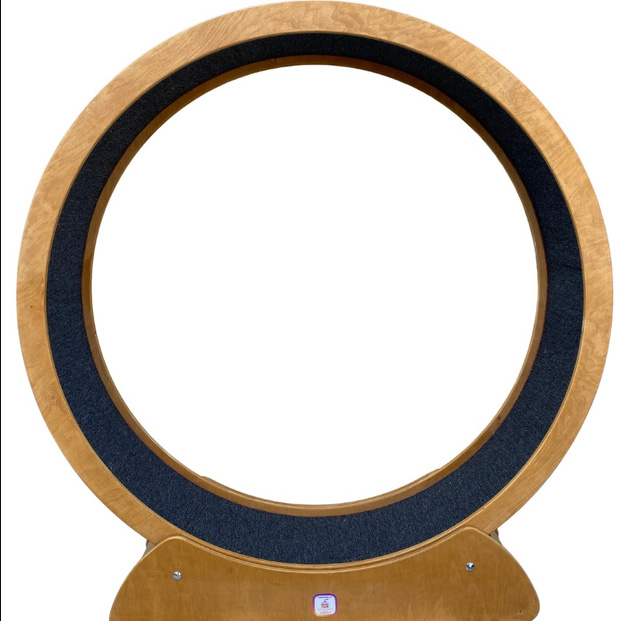 The manufacturer uses natural materials for the wheel, such as plywood and carpet. A reliable transparent varnish ensures the durability of the surfaces, and the carpeting creates a soft surface for enjoyable running.