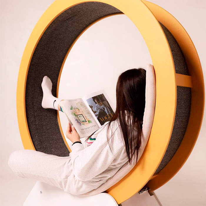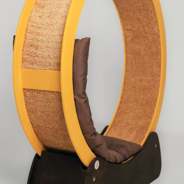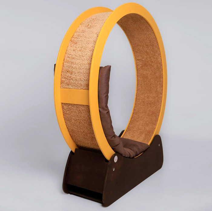 This wheel is also interesting for its large size and the fact that it can withstand a load of up to 100 kg. This means that not only can a cat run in it, but its owner can also use it as an armchair. So, the wheel becomes not only a beautiful and original decoration item but also a treadmill for a cat and an armchair for people.