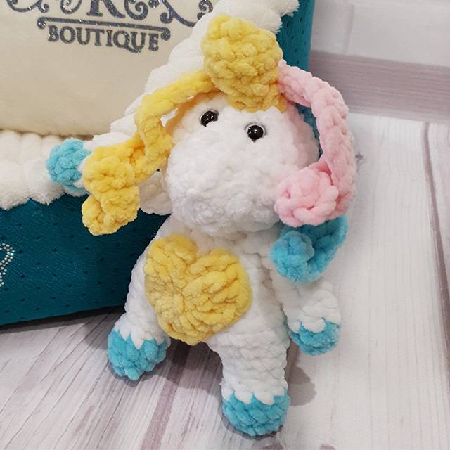 We are pleased to present to your attention a charming toy for dogs and cats. This crocheted soft unicorn is made of plush yarn, which makes it extremely pleasant to the touch. Your pet will be delighted. Inside the toy there is a rattle and a squeaker.