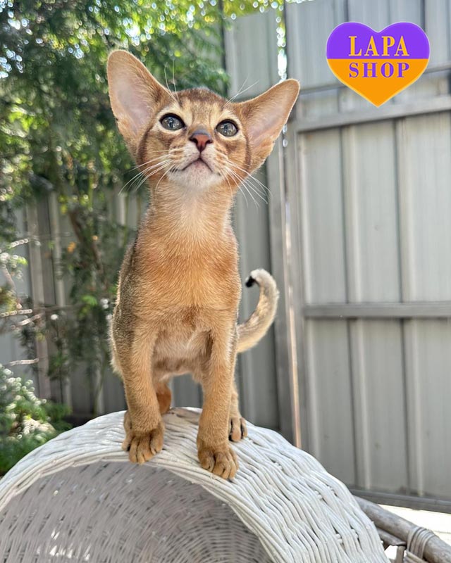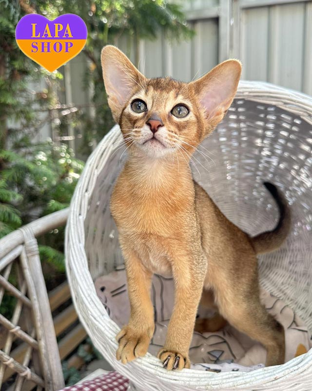 Claus – настоящий джентльмен среди абиссинцев: дикий окрас его шерсти сияет теплыми оттенками, а выразительные зеленые глаза придают образу глубины и обаяния.
