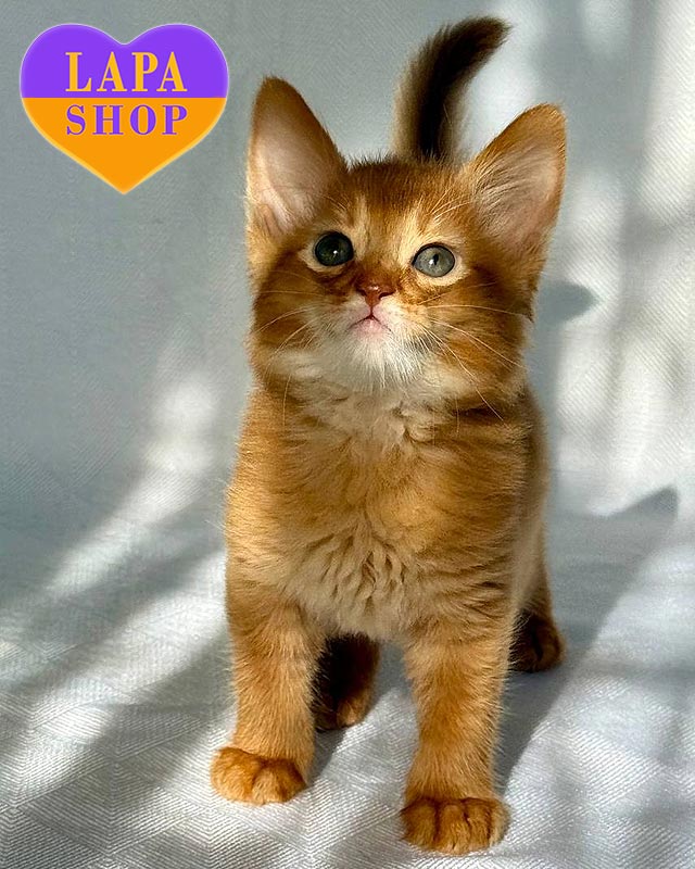 Маленький Happy — настоящий лучик света с рыжевато-золотым мехом, который мягко сверкает в каждом движении.