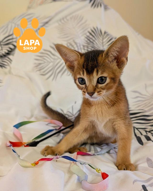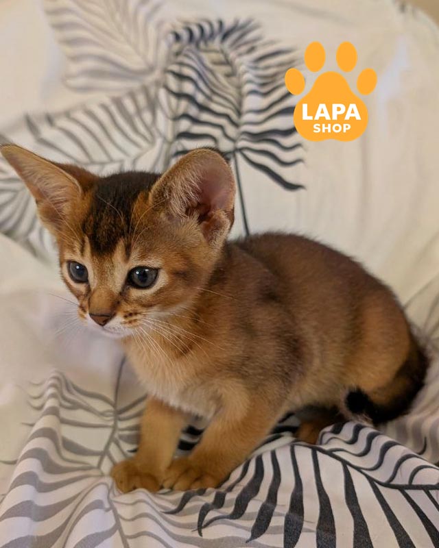 Sonia — девочка абиссинской породы с элегантным телосложением и короткой, шелковистой шерстью классического дикого окраса.