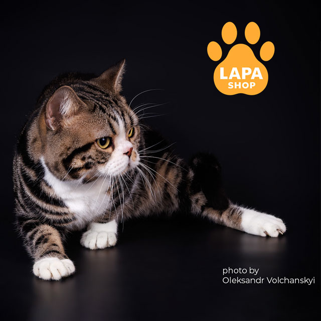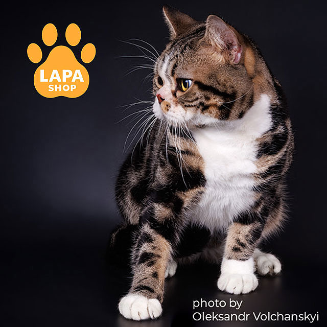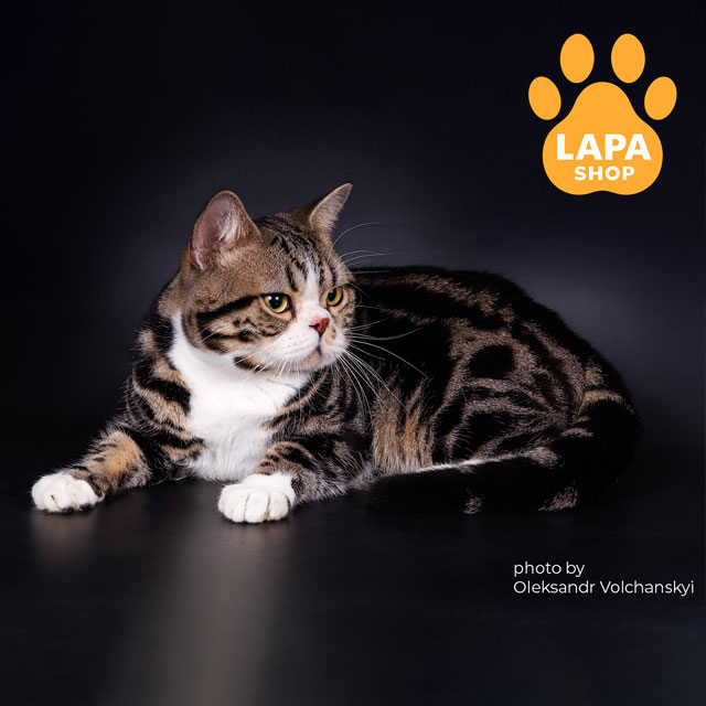 Makaron – милый американский короткошерстный котенок нежного окраса, который создает гармоничный контраст между темными полосками и белыми оттенками.
