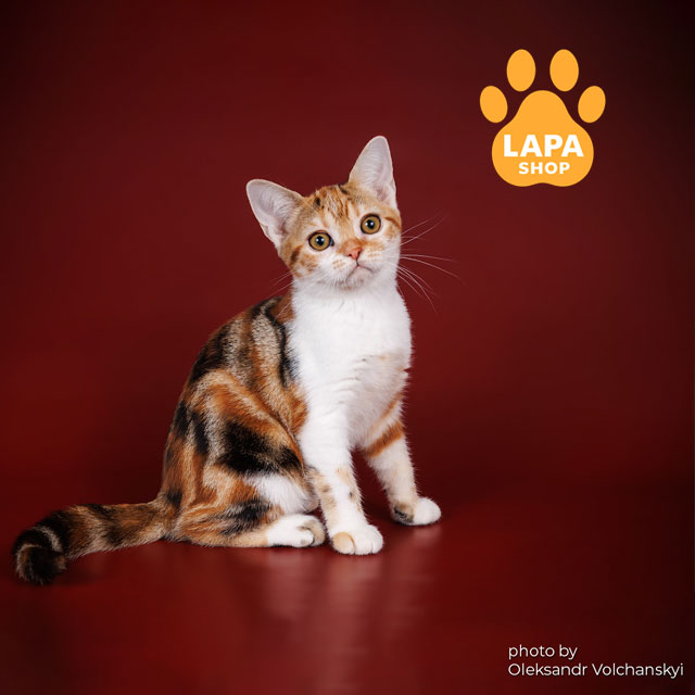 Peppercorn – очаровательная девочка породы американская короткошерстная с выразительным браун патчет табби с белым окрасом, где теплые коричневые полосы сочетаются с рыжими вкраплениями и чистыми белыми участками.