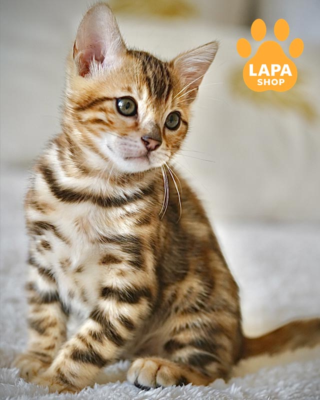 Jazzy – настоящий маленький леопард с блестящей золотой шерстью, украшенной выразительными розетками.