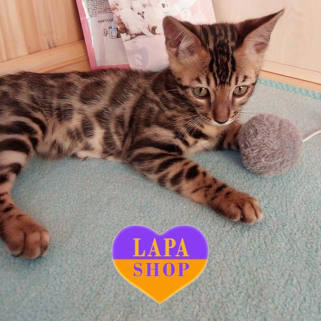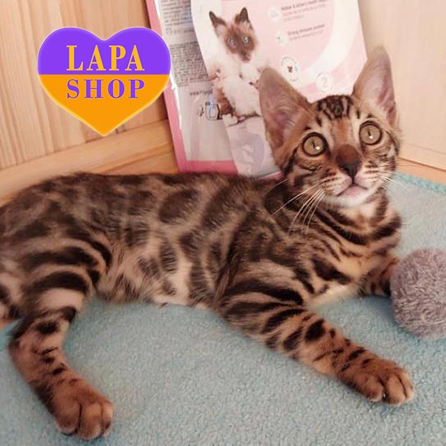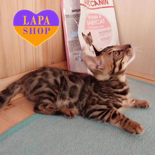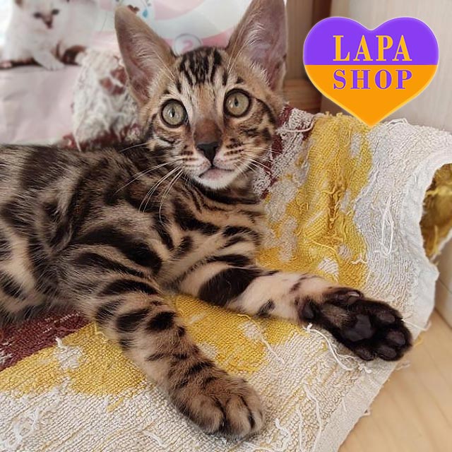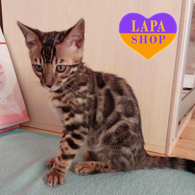 Аманда – очаровательная бенгальская девочка с выразительным окрасом: контрастные розетки на теплом золотом фоне смотрятся эффектно и благородно.