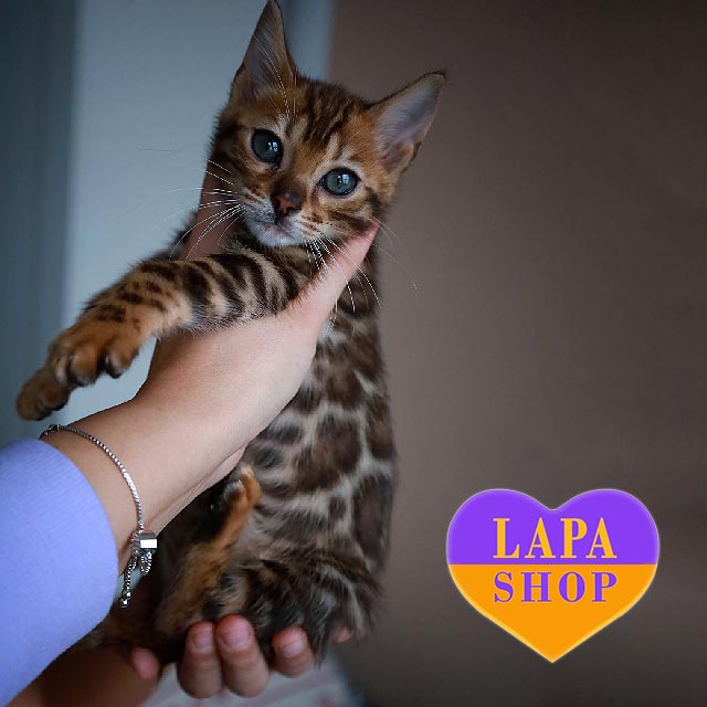 Mia – роскошная принцесса с роскошным окрасом, которыйя имеет характерные розетки, создающие уникальный узор на ее шерсти. Ее блестящие глаза, выразительный взгляд и изящное телосложение делают ее настоящей красавицей.