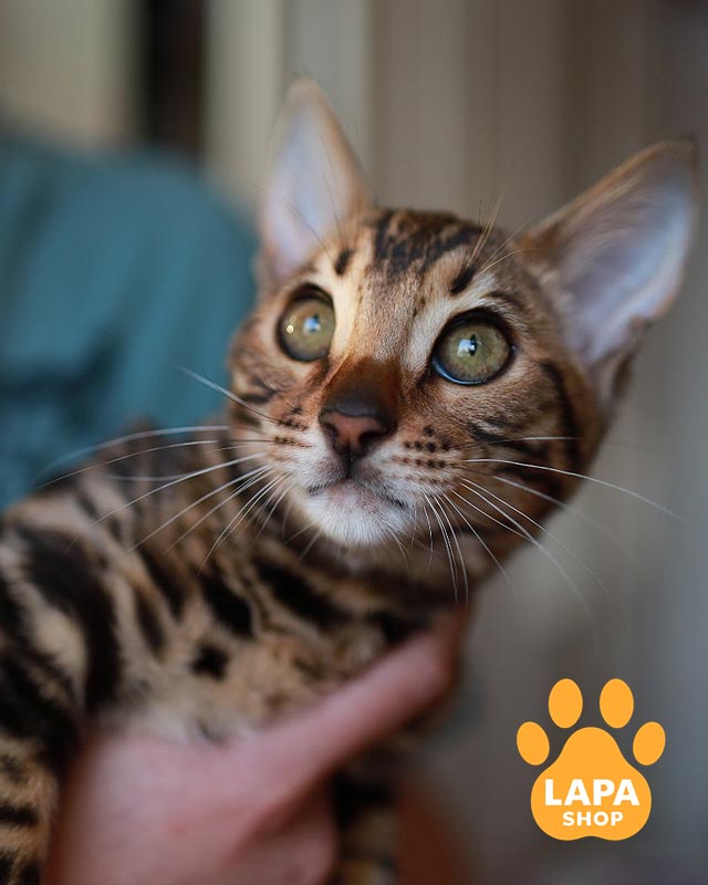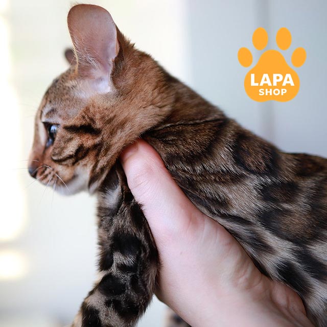 Bonita — девочка бенгальской породы с элегантным, хорошо сформированным телосложением и выразительной линией корпуса.