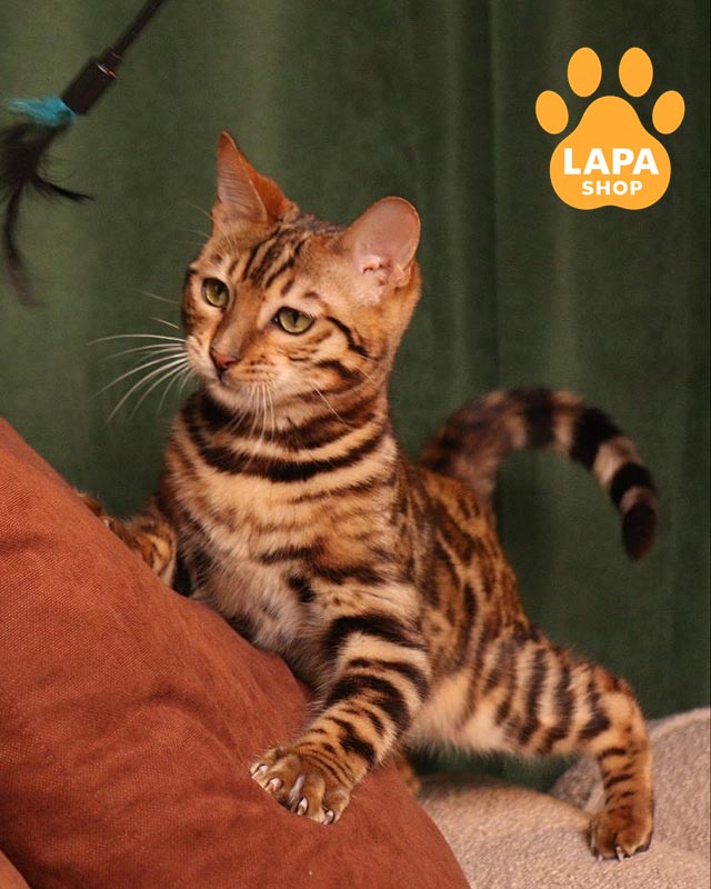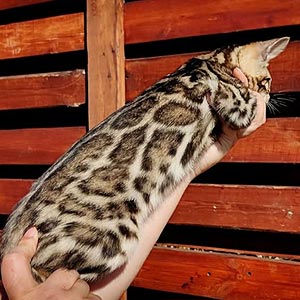 Крепкое телосложение, удлиненное тело и хорошо развитая мускулатура подчеркивают классический бенгальский тип.