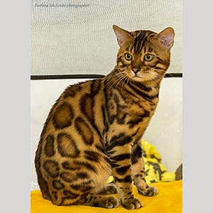 Яркий бенгальский мальчик Leo с эффектным золотистым окрасом и с выразительными розетками. Его взгляд – настоящее сочетание дикой грации и домашней ласки.