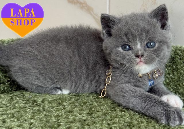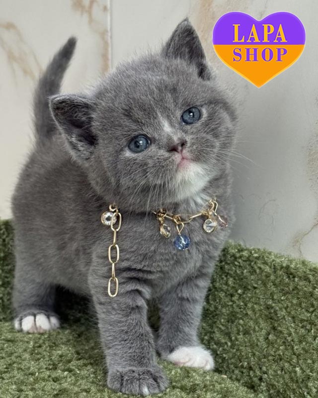 Его нежный голубой окрас с белыми вставками выглядит очень стильно, а круглая мордашка и большие глаза придают ему особый шарм.