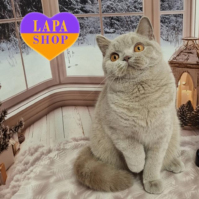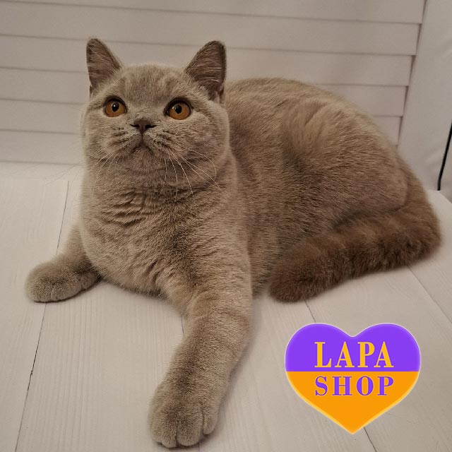 Laffey — нежная представительница британской породы с большими выразительными глазами и элегантным телосложением. Ее лиловый окрас выглядит чрезвычайно изысканно и придает ей особый шарм.