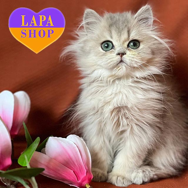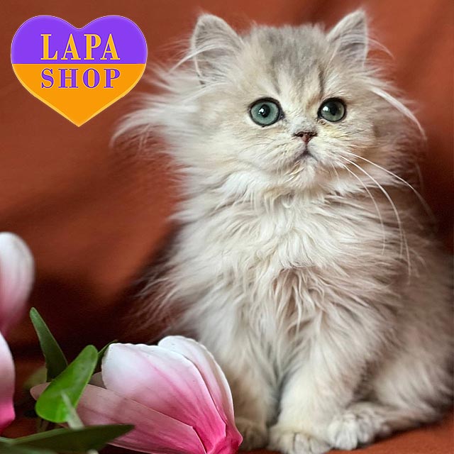 Эта очаровательная девочка породы британская длинношерстная имеет голубо-золотой затушеванный окрас, придающую ей сказочный вид.