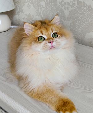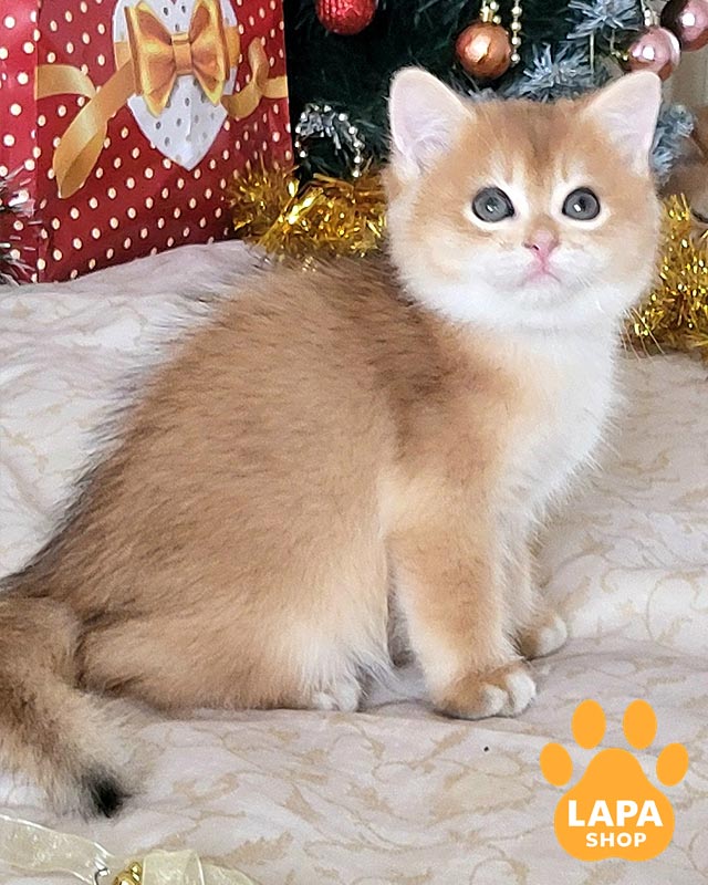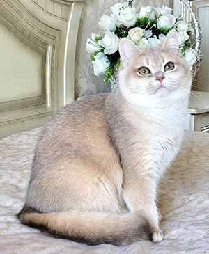 Короткая шерсть с плюшевой текстурой выглядит равномерной и ухоженной. Гармонические пропорции тела и аккуратные черты мордашки подчеркивают классический породный тип.