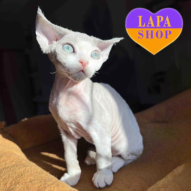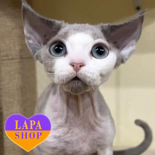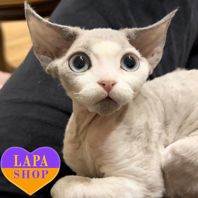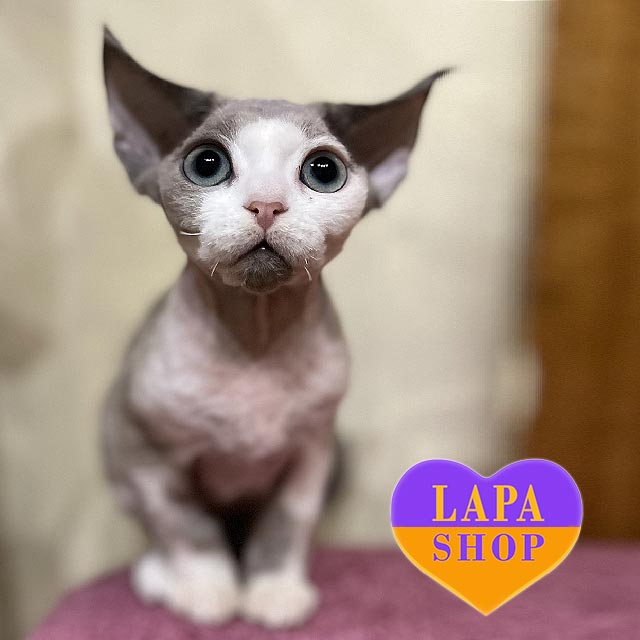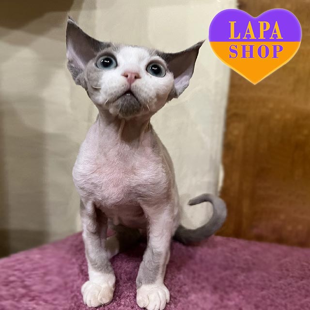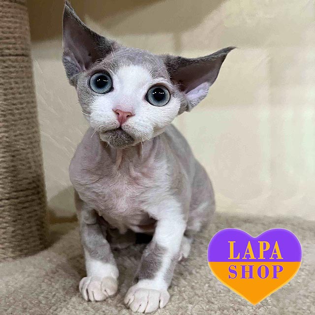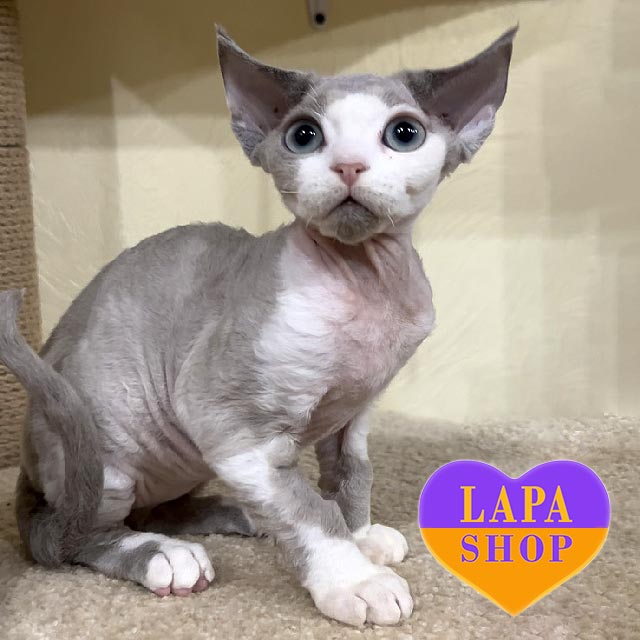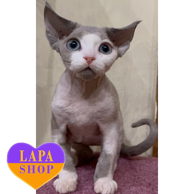 Garik – милый котенок девон-рекс с необычной волнистой шерстью окрасом голубого минк с белым.