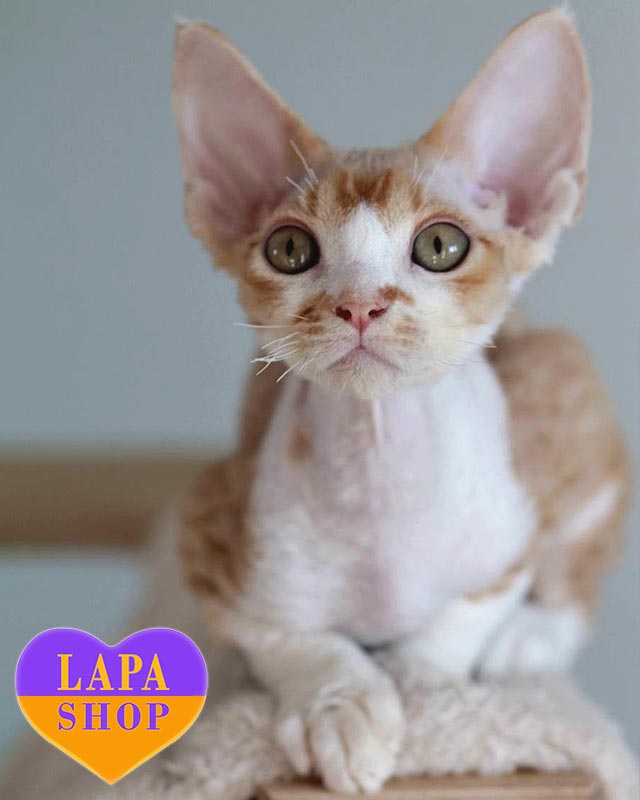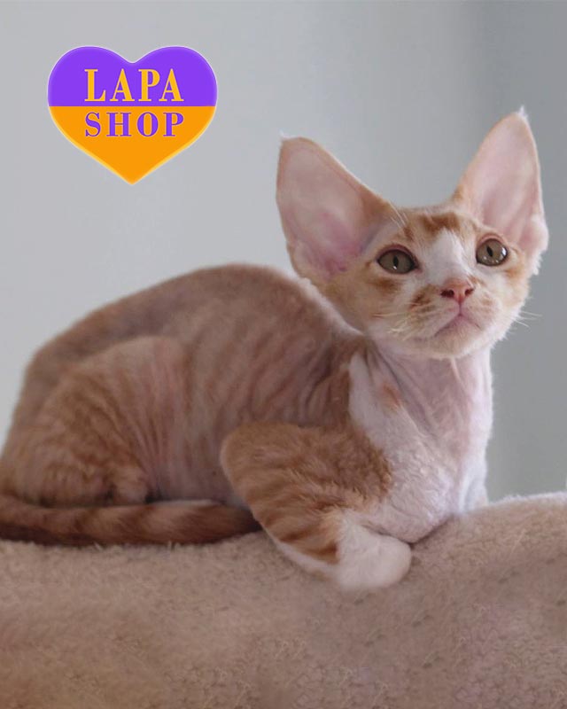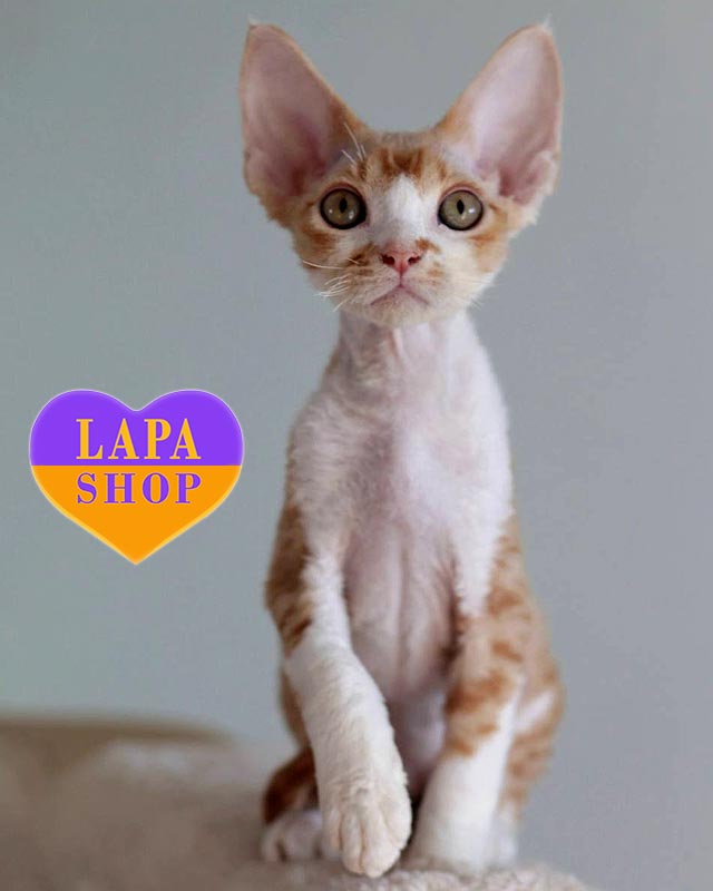 Ike – очаровательный мальчик породы девон-рекс с яркым красно-белым окрасом и характерными волнистыми кудряшками.