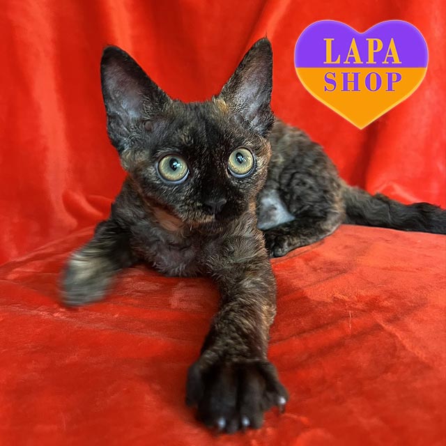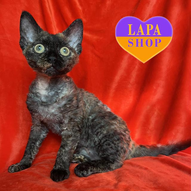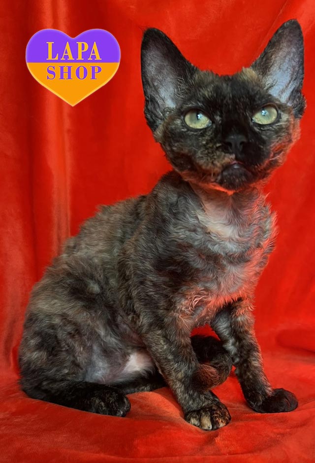 Iris – очаровательная кошечка породы девон-рекс с черепаховым окрасом.