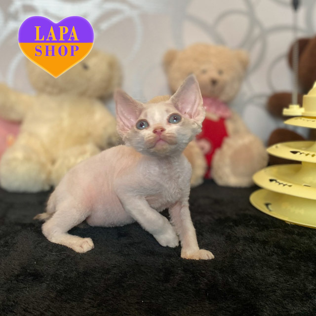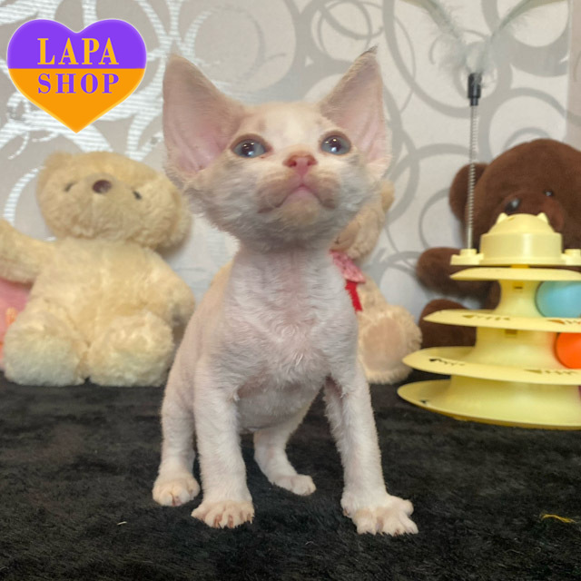 Jack – изящный девон-рекс с необычной окраской: голубой линкс пойнт с белым. Его короткая волнистая шерсть и большие выразительные глаза придают ему особый шарм. Этот малыш обязательно станет настоящим украшением вашего дома и подарит вам множество нежных моментов.