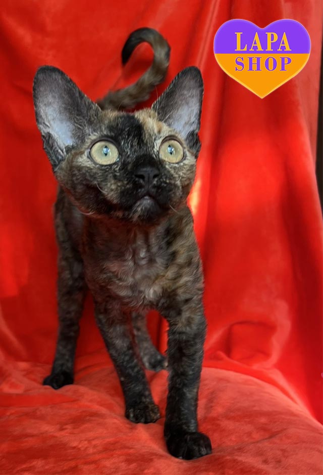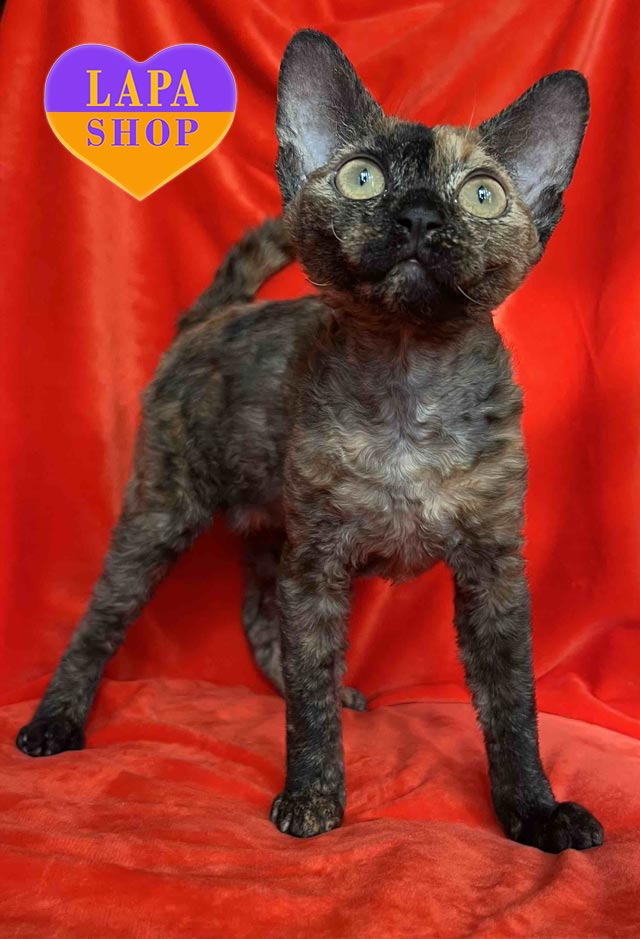 Intriga – очаровательная девочка, которая имеет нежную вьющуюся шерсть и большие выразительные глаза.