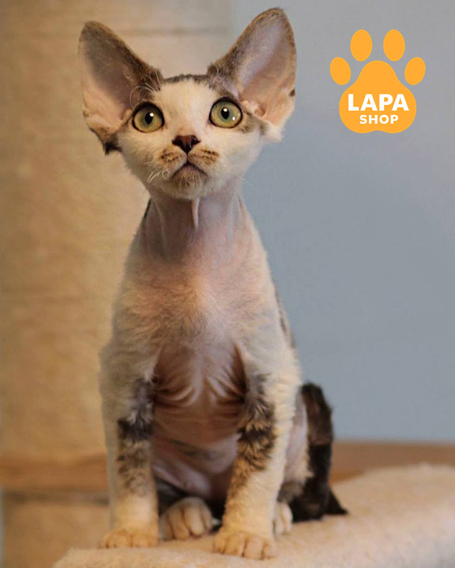 Lewis – изящный котик с привлекательным черным табби арлекин окрас, который создает оригинальный рисунок на его короткой волнистой шерсти. Его выразительные большие ушки и гармоничные черты мордашки подчеркивают породную красоту и делают внешность особенно эффектной. Элегантное телосложение и неповторимый арлекин-рисунок придают ему настоящую индивидуальность.