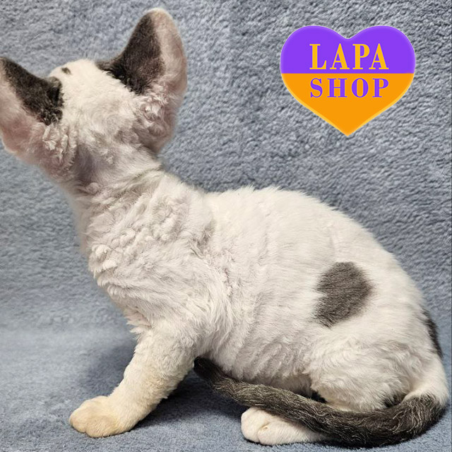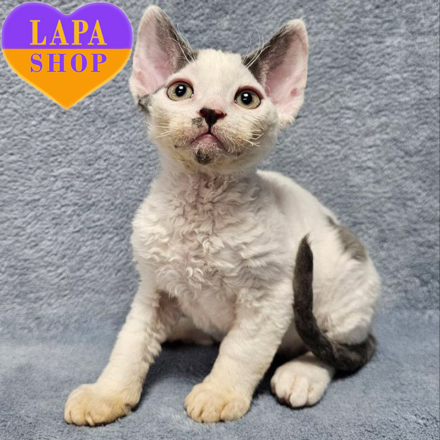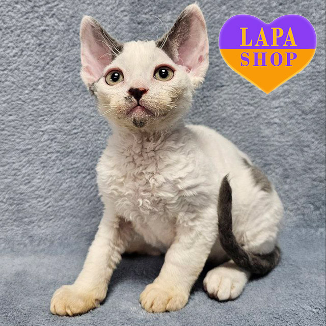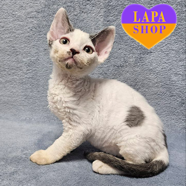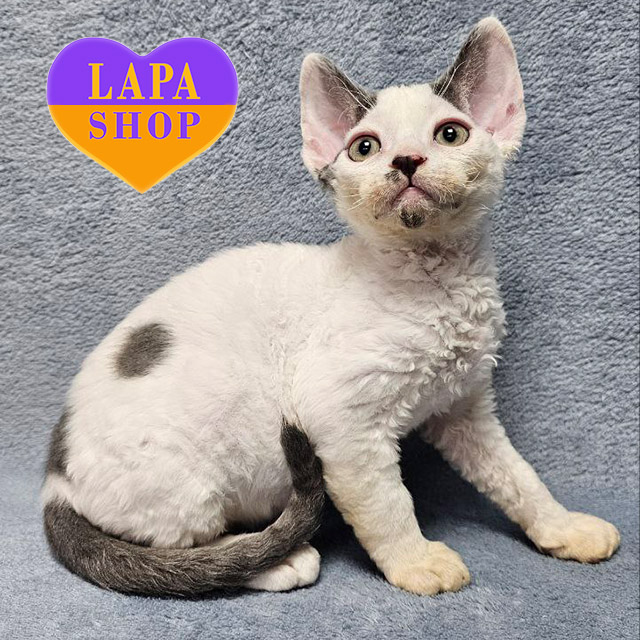Simon – очаровательный девон-рекс с нежным голубым биколором (a 03) окраской. Его волнистая шерсть придает ему особый шарм, а большие выразительные глаза излучают любопытство и игривость.