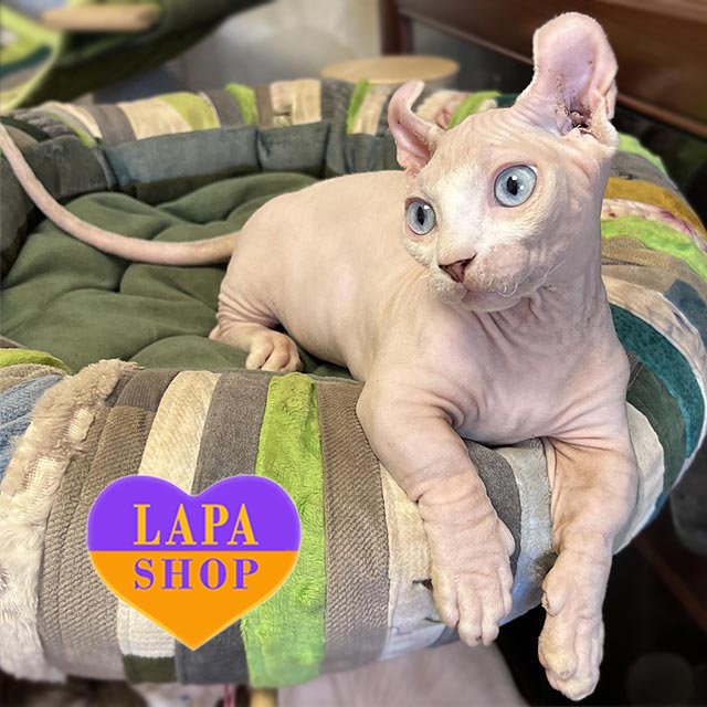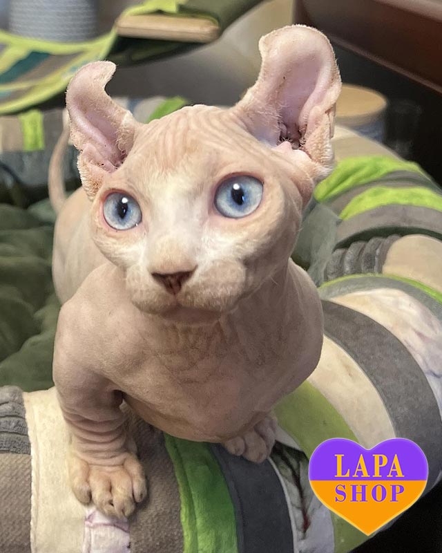 Calli — очаровательный мальчик породы двельф имеет нежный белый окрас и глубокие голубые глаза, поражающие с первого взгляда.