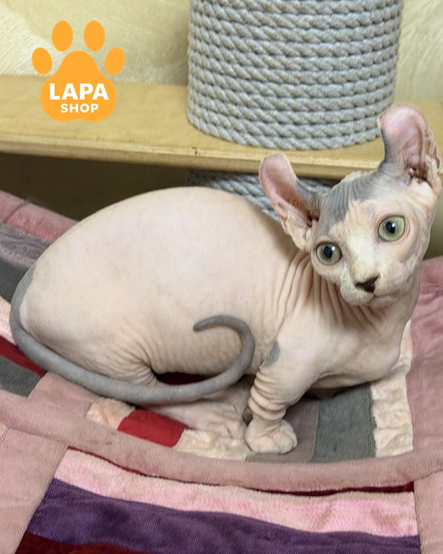 Elay – невероятно привлекательный котенок породы двельф с голубым арлекиновым окрасом, который делает его внешность уникальной.