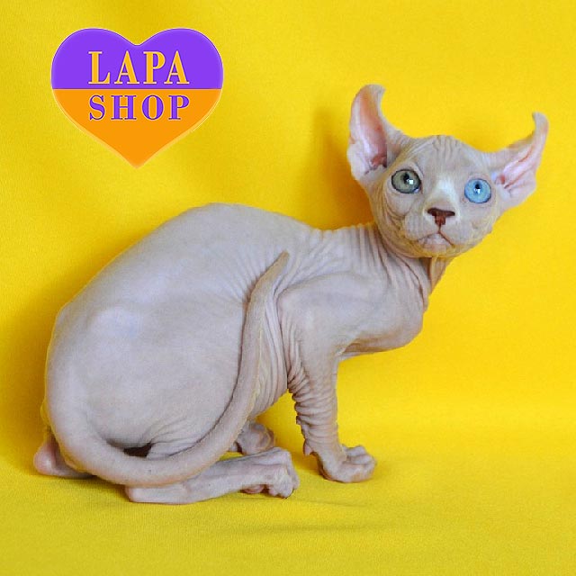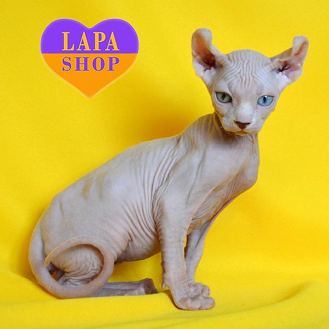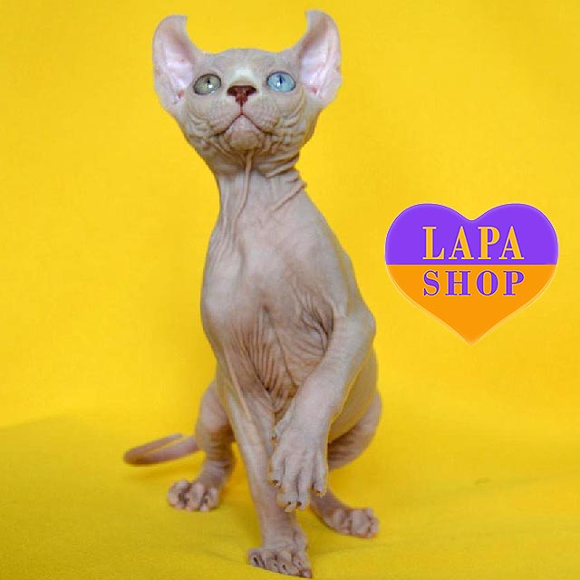 Diamond – непревзойденный котик породы эльф с яркими разноцветными глазами, которые притягивают взгляд. Его уникальный и утонченный вид придают ему элегантность и загадочность.