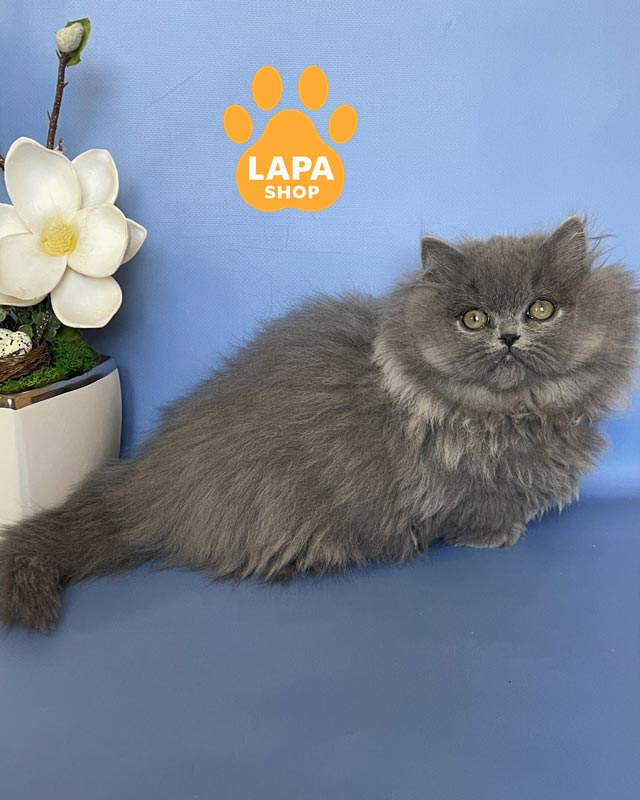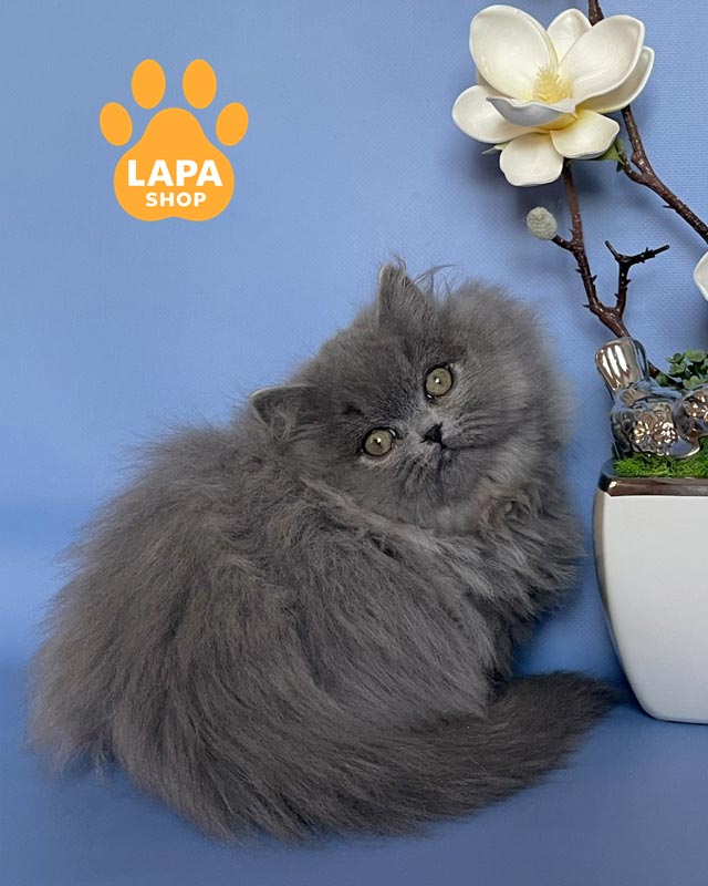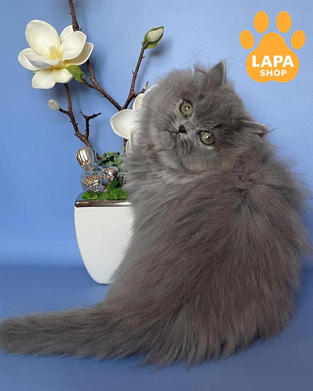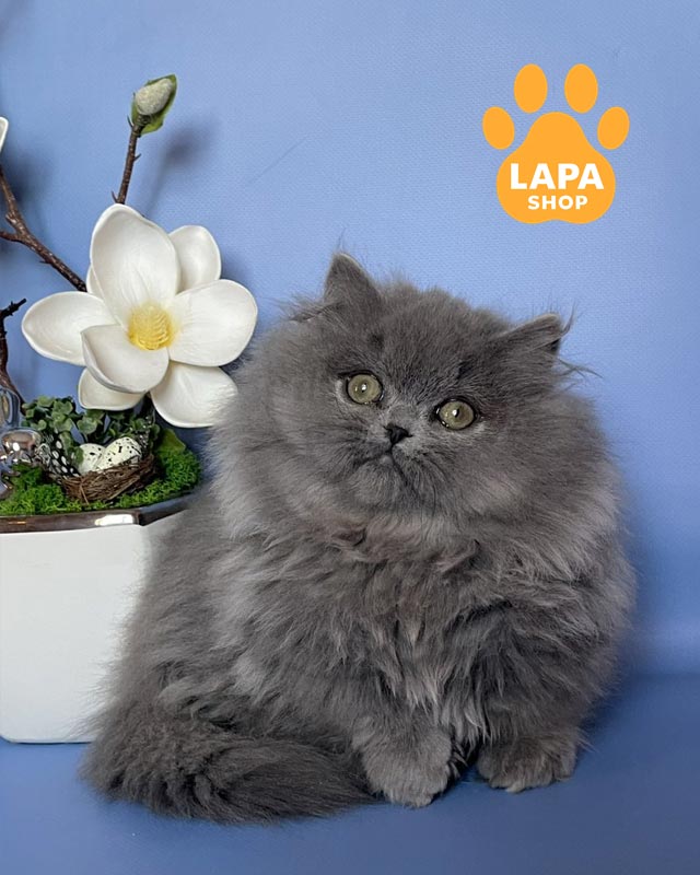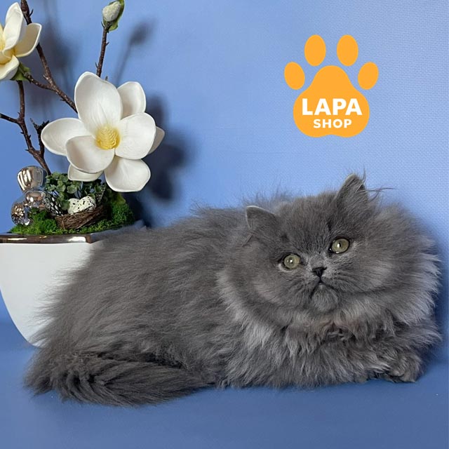 Манчкин Buddy – голубой красавец с пышной шубкой и миловидными коротенькими лапками.