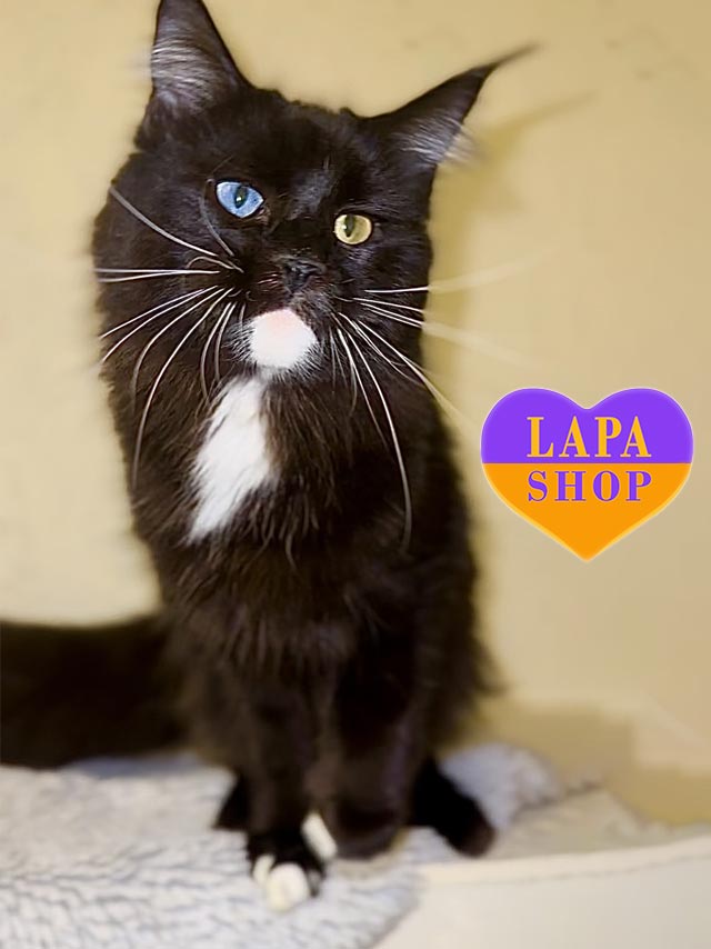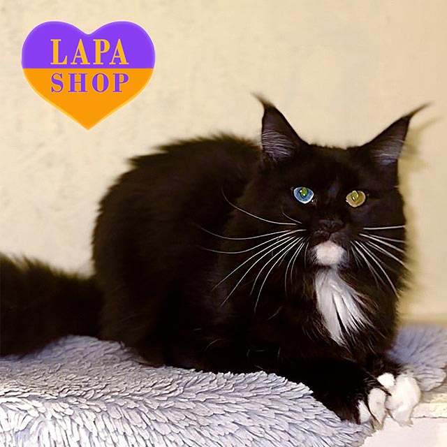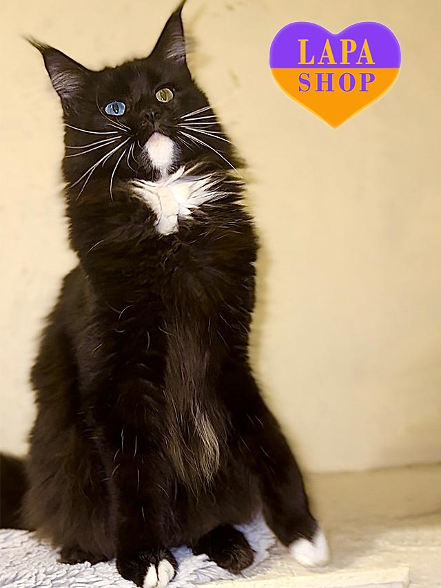 Anita — очаровательная девочка мейн-кун F3 в изысканным черным серебристым окрасом с белыми отметинами. Ее взгляд – настоящая жемчужина, ведь она несет доминантный ген голубых глаз.
