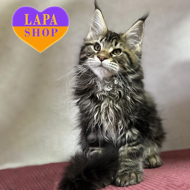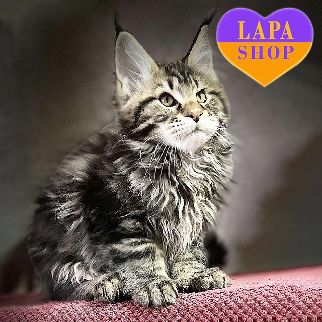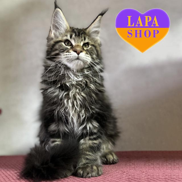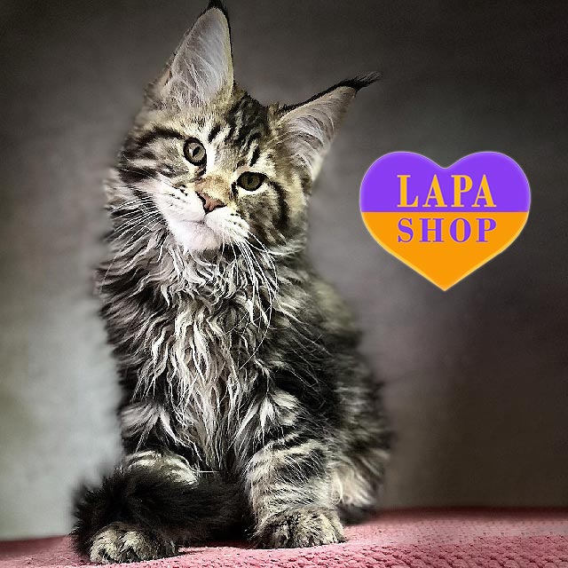Котенок Archie – представитель породы мейн-кун, который выглядит величественно. Его окрас — черный мраморный (n 22) — имеет изящные природные узоры на темном фоне, которые придают ему особый шарм.