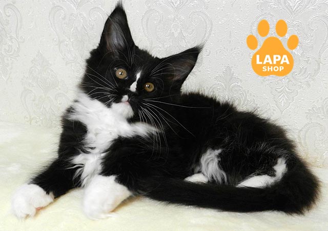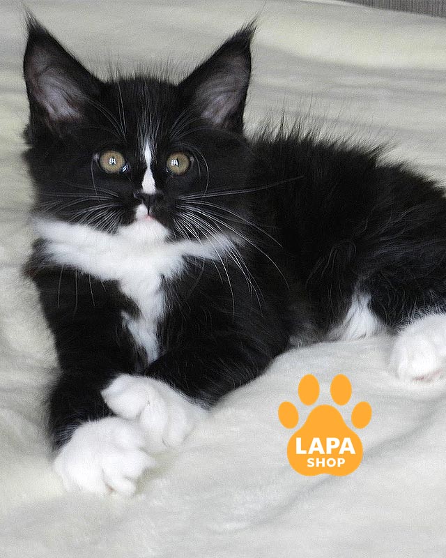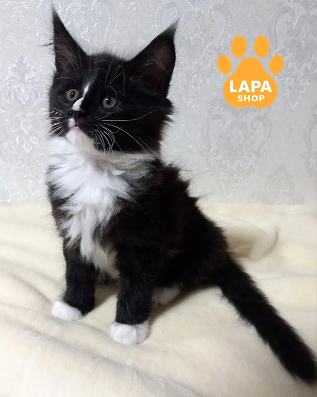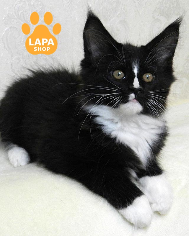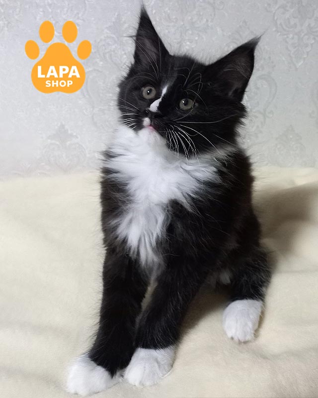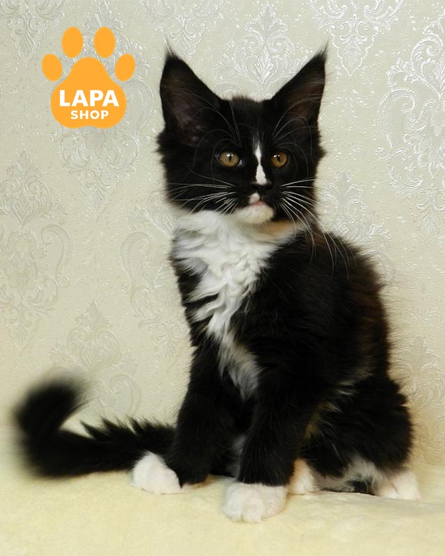 August — мальчик породы мейн-кун с выразительной черным биколорным окрасом (n 03).