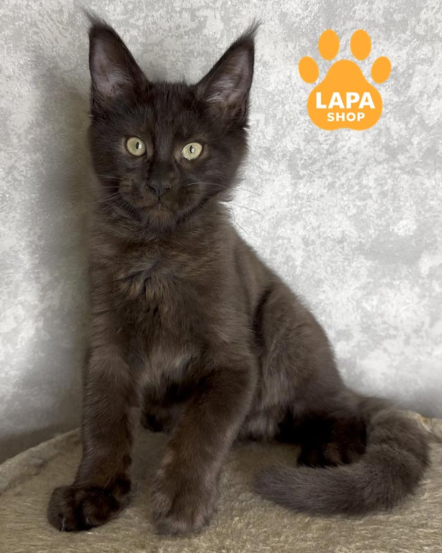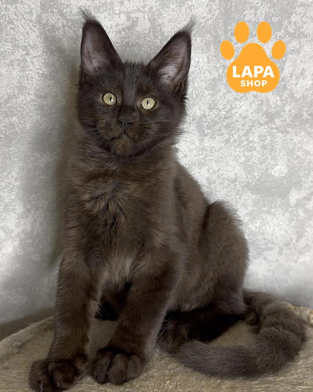 Avista – невероятно элегантная мейн-кун девочка с насыщенным черным мехом, переливающимся бархатным блеском.