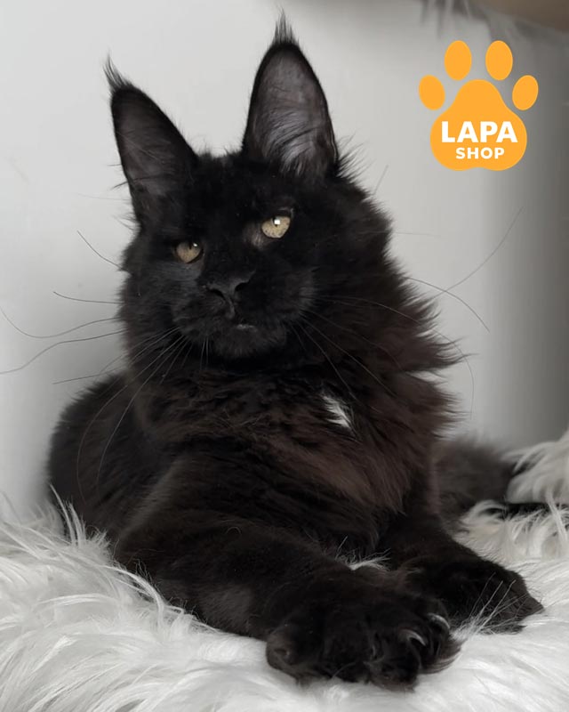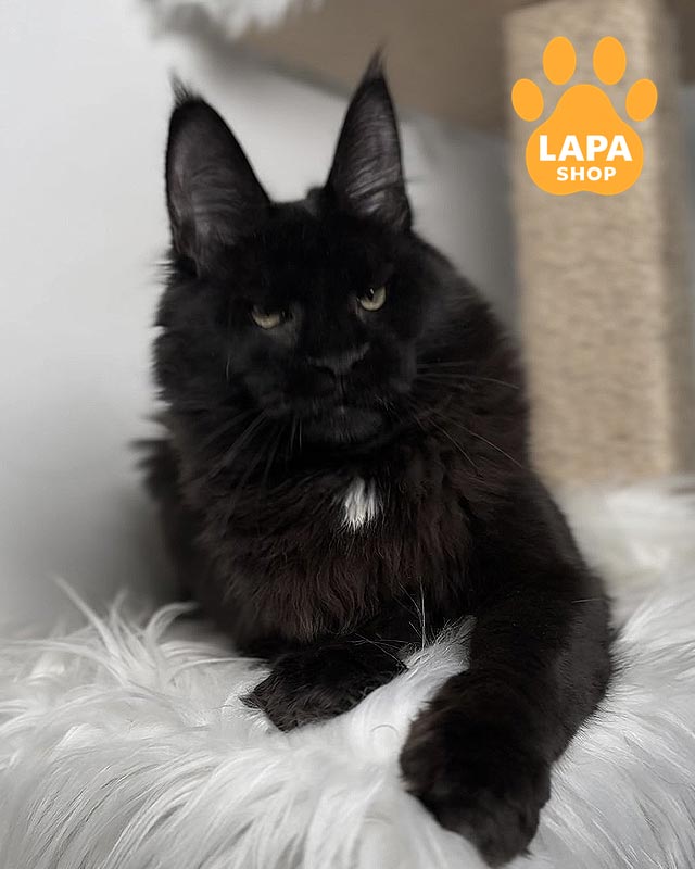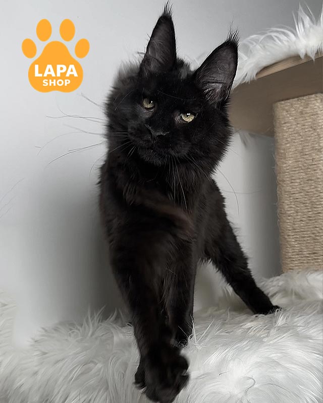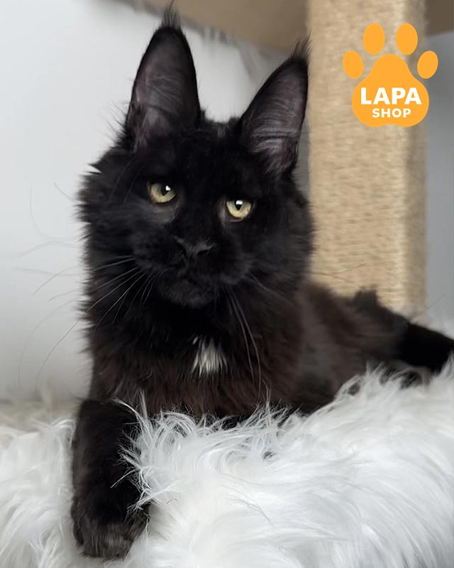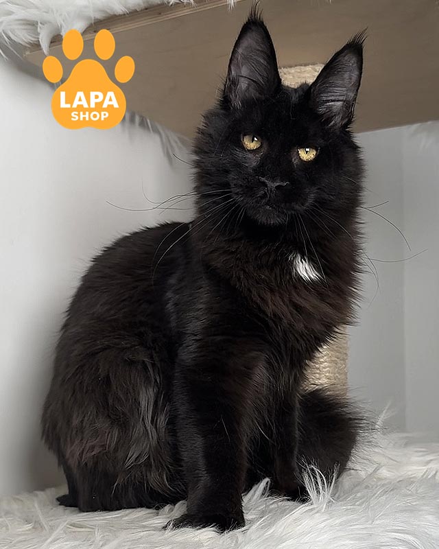 Katalina — грациозная кошечка породы мейн-кун с изысканным черным с белым окрасом (n09). Ее блестящий густой мех и гармоничные пропорции тела подчеркивают элегантность породы. Кошечка выглядит изящно и привлекательно, привлекая внимание с первого взгляда.
