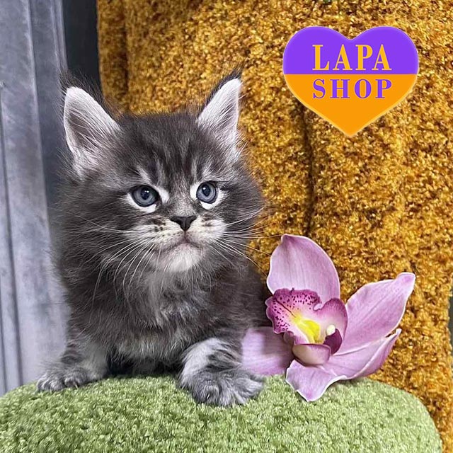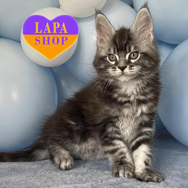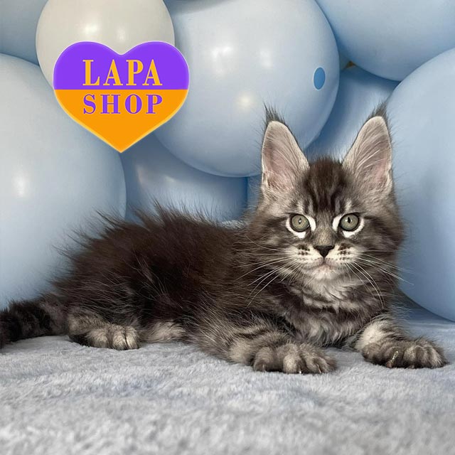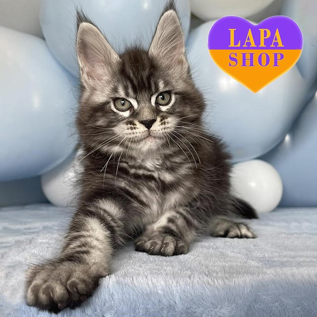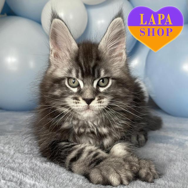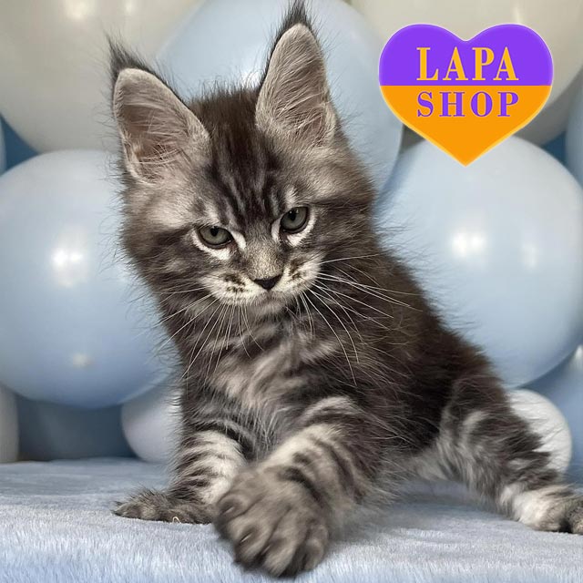 Darwin – красавчик породы мейн-кун с роскошным черным серебристым мраморным окрасом.