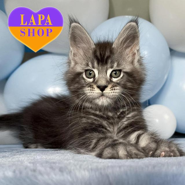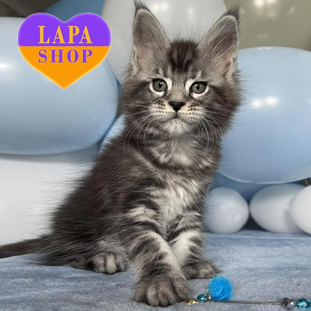 Dexter — элегантный мальчик с черным серебристым мраморным окрасом.