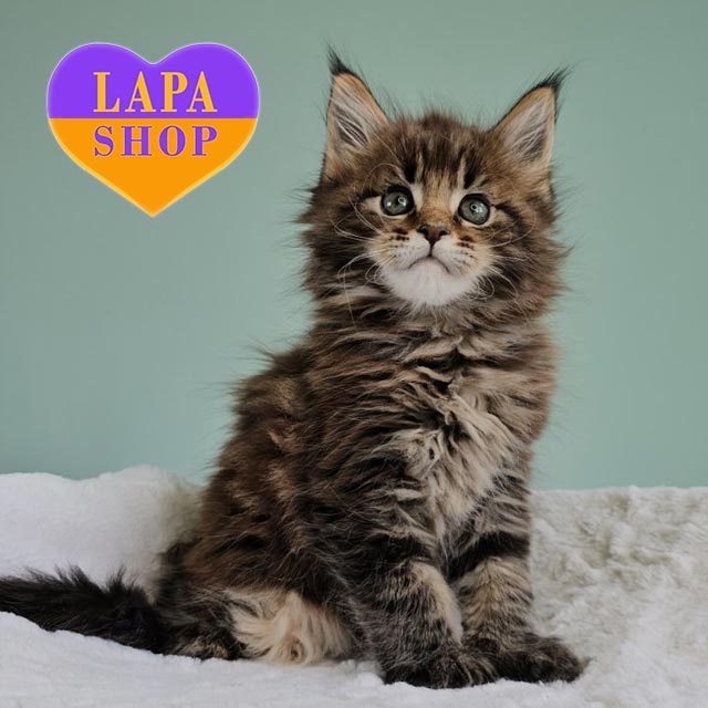 Diego – величественный мейн-кун в мраморном наряде. Он завораживает своей пушистой шерстью и эффектным мраморным рисунком.