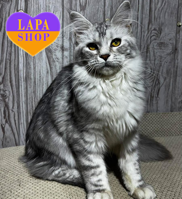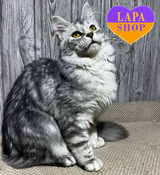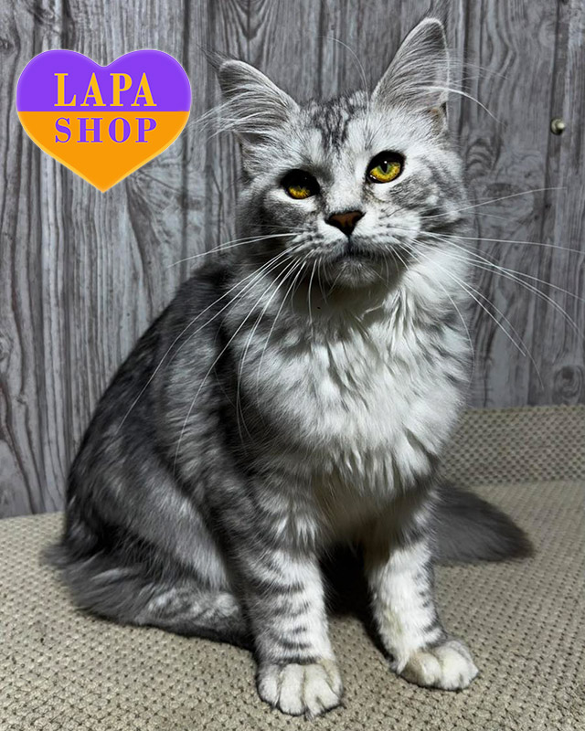 Afelia – красивая мейн-кун девочка с благородным окрасом черный серебристый мраморный (ns 22). Ее роскошная шерсть и изящные линии делают ее настоящим украшением любого дома.