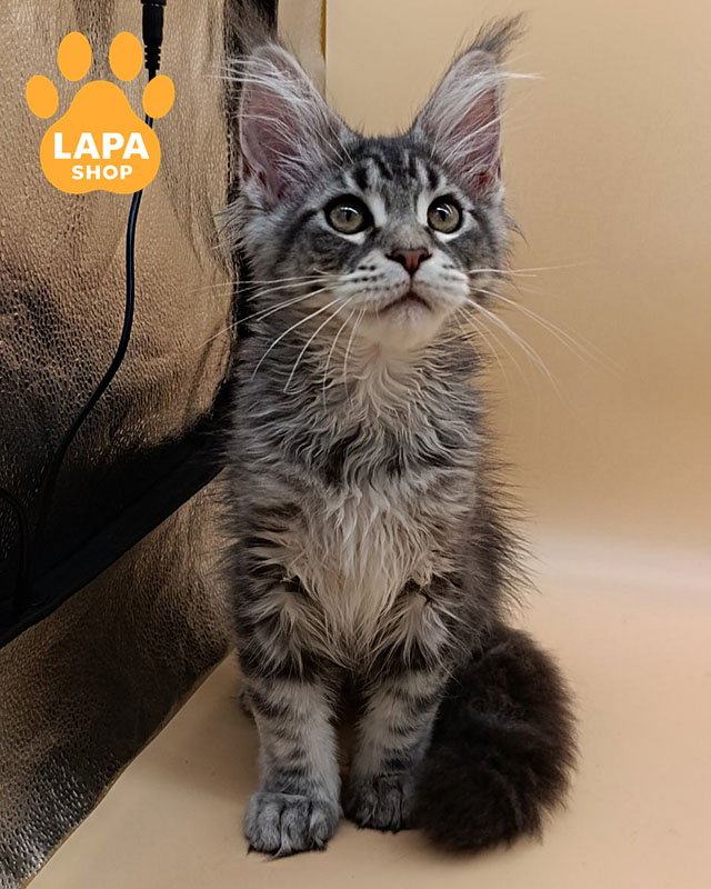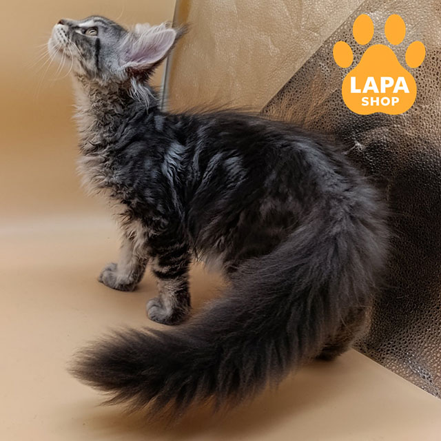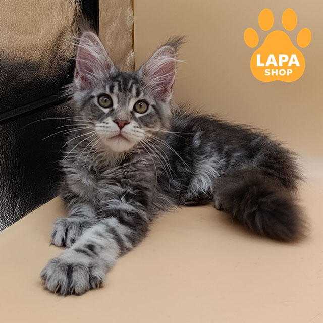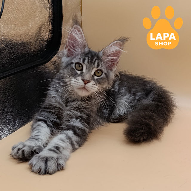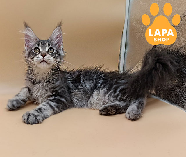 Duncan – величественный красавец породы мейн-кун с эффектным голубовато-серебристым мраморным окрасом. Его роскошная шерсть и гармоничный узор подчеркивают массивное телосложение и элегантный хвост. Большие лапы и выразительные глаза придают ему особый шарм.