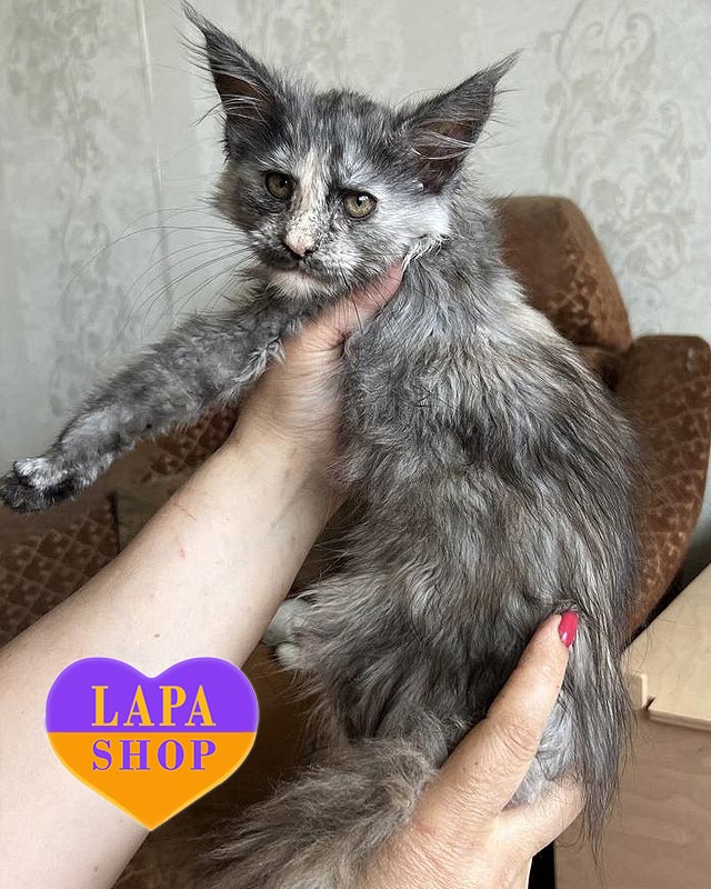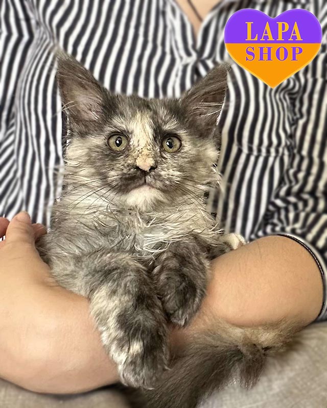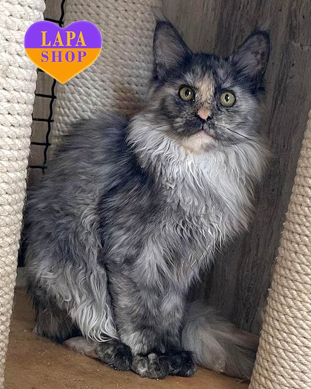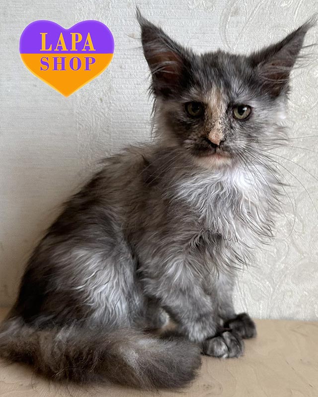 Нежная и величественная мейн-кун-девочка Hermione в редком серебристом черепаховом окрасе.