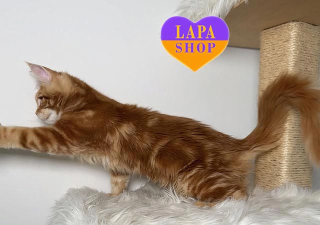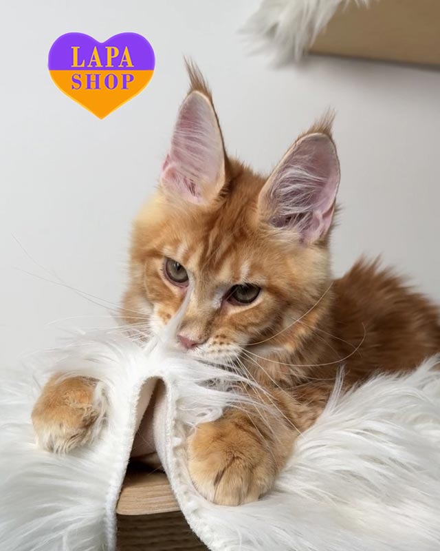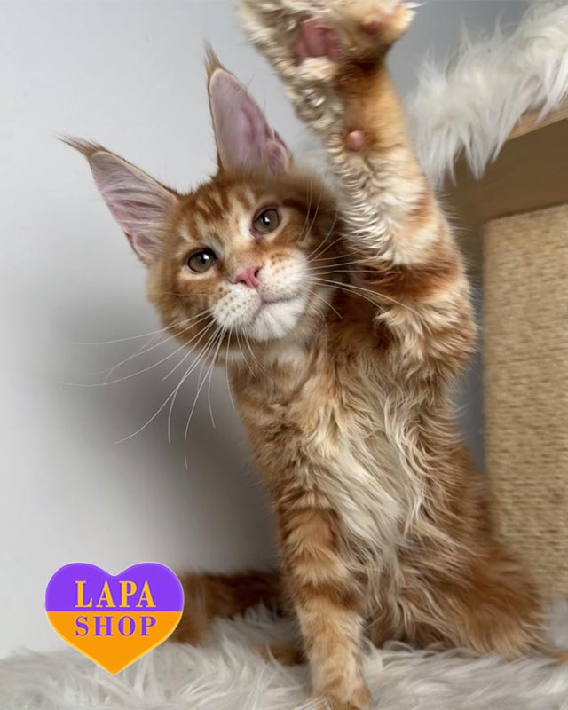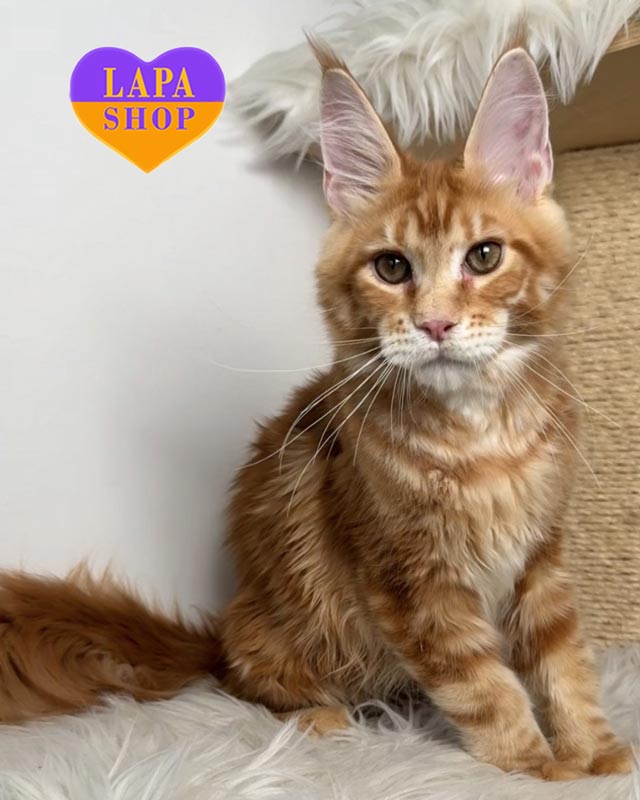 Этот мальчик впечатляет своим эффектным рыжим окрасом с выразительным мраморным узором.