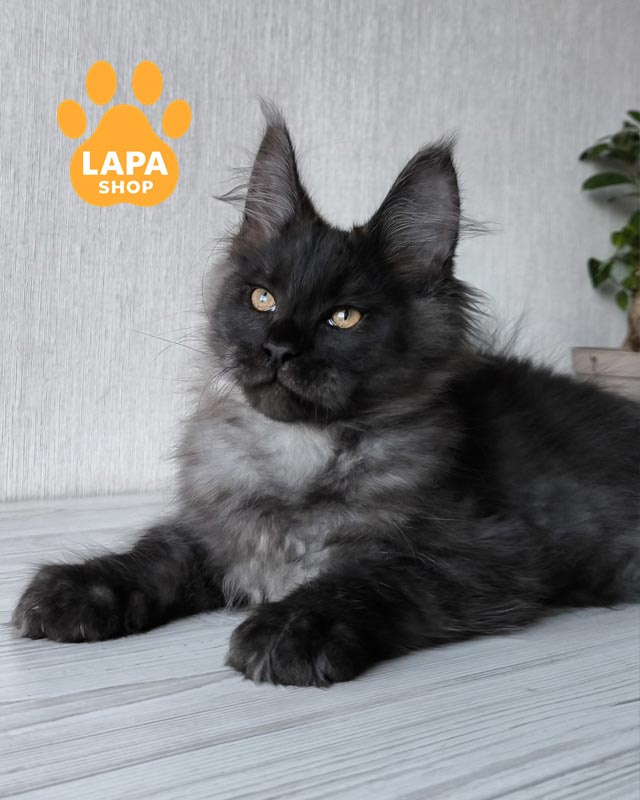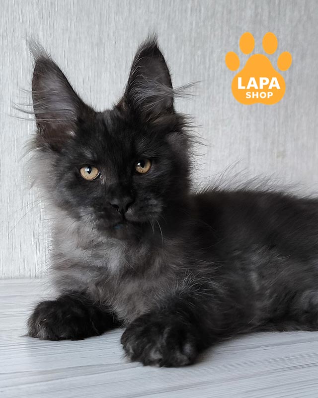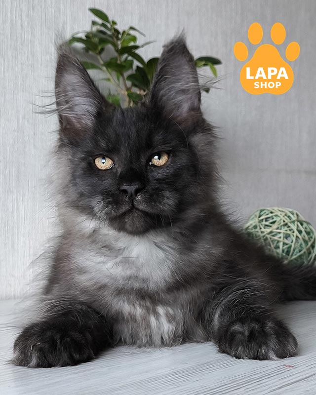Indigo – котенок породы мейн-кун с массивным телосложением, выразительным корпусом и хорошо сформированным породным типом.