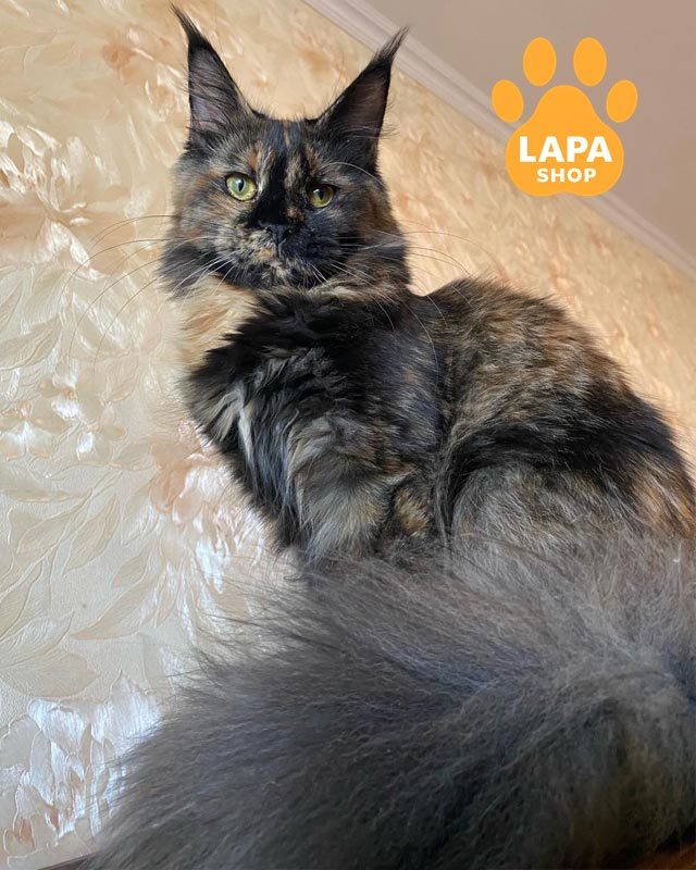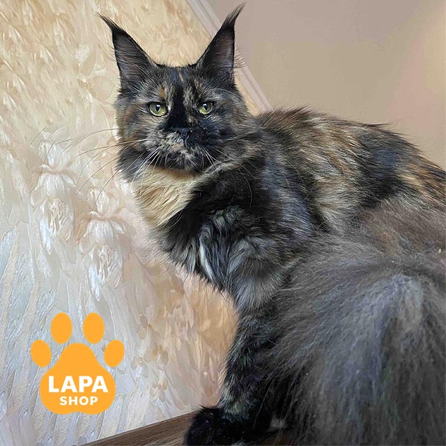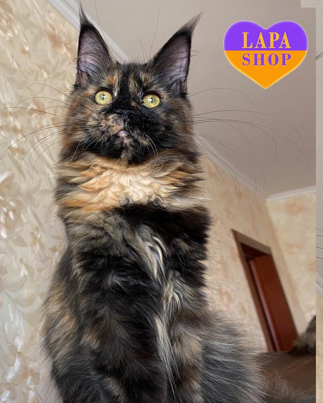 Irma – яркая девочка мейн-кун с черепаховым окрасом (f), сочетающий теплые оттенки в неповторимом узоре.